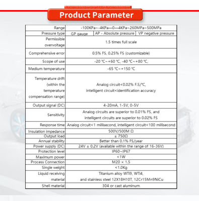 | Bereik | 0~500MPa;-100Kpa~-4Kpa (aanpasbaar) | Type | Druksensor |